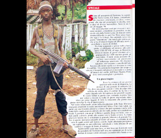 Con il Sudan e la Somalia, la Liberia è un altro punto caldo dell’Africa in cui si combatte una guerra “dimenticata” dai mezzi occidentali d’informazione. Siamo all’aeroporto di Freetown, la capitale della Sierra Leone, Cif James, comandante dei marines americani, ci dice: “state pronti, alle due del pomeriggio si decolla, siete in dieci di diversa nazionalità”. Sono le ore 8 del 20 maggio ’96. Gli stessi elicotteri usati per evacuare i residenti stranieri, consentono ai giornalisti, in due ore di volo dalla Sierra Leone, di sbarcare senza alcuna difficoltà in quel Far West senza legge che oggi è la Liberia. Sto andando verso una guerra “dimenticata” che non fa più notizia anche se ha il bilancio tragico di 200 mila morti e un milione e mezzo di sfollati. Un forte temporale e grosse nubi a bassa quota, ci obbligano ad atterrare sulla portaerei USS GUAM, al largo di Monrovia, dotata di decine di grossi elicotteri ed equipaggiata da 1.800 marines pronti ad intervenire. A tarda serata possiamo decollare nuovamente ed atterriamo all’ambasciata americana. Gli elicotteri ripartono, noi lasciamo i cancelli dell’ambasciata alle nostre spalle e ci troviamo in zona di conflitto. Un camioncino furgonato (un tempo usato per il trasporto del pesce) ci raccoglie e ci porta all’interno del cortile dell’Hotel Mamba Point, dove sono asserragliati i giornalisti. Un gioco tragico Ecco la cronaca di un giorno qualsiasi nelle strade di Monrovia. La cronaca di una giornata di ordinaria follia, dove una quiete surreale è rotta di colpo dalle raffiche dei mitra, dove il confine tra la vita e la morte dipende solo dal capriccio dei proiettili vaganti. Ci siamo tuffati in questo caos, corrimano in prima linea per vedere e toccare la realtà di questa angosciante atmosfera, per poter leggere di fatto la situazione che giorno dopo giorno stravolge la vita di questo paese. Nel vuoto istituzionale creato dalla dissoluzione dello Stato liberiano, emergono prepotenti le radici ancestrali dell’Africa. Con i loro valori, ma anche con una brutalità primitiva e feroce che può esprimersi anche nelle forme delle mutilazioni ai cadaveri, dei riti vodù, perfino nel cannibalismo rituale. I guerriglieri, con un po’ di birra o qualche droga eccitante, sono ormai carichi a dovere, pronti allo scontro con le bande avverse. La battaglia tra le fazioni che si richiamano al generale Johnson e al generale Taylor, in questo momento entrambi al sicuro all’estero, si consuma in una serie di rapidi scontri agli incroci, cariche, fughe altrettanto precipitose, ma soprattutto in una esibizione individuale e tutta africana di spavalderia e coraggio di fronte al nemico. Sembrerebbe quasi una farsa, se non fosse per il pericolo reale dei proiettili che fischiano nell’aria, ma soprattutto per il rischio mortale di restare isolati ed essere circondati dalla banda avversaria (nessun pericolo per giornalisti e fotografi). In questa guerra non esistono i prigionieri: chi cade a terra viene immediatamente massacrato e fatto a pezzi da una selva di bastoni, baionette e pugnali. La battaglia è durata un paio d’ore, per oggi non ci sono stati morti, ma gli uomini di Johnson hanno conquistato qualche isolato in più del loro territorio. Arriva l’agognato momento del saccheggio, l’unica ricompensa concessa ai loro bravi dai “Signori della guerra” che li manovrano a distanza ubbidendo a contorte logiche di potere e agli interessi economici delle multinazionali straniere come ho già detto: il caucciù, il legname pregiato, l’oro e i diamanti. Va in scena quindi il saccheggio dei poveri, che raccattano le briciole della ricchezza di un tempo, quando la Liberia era definita l’America dell’Africa. Eppure le ragioni della guerra sono forse date dalla disperazione, conseguenza di una anarchia inarrestabile, e questa follia autodistruttiva potrà fermarsi solo quando non ci sarà ormai nulla da rubare e da distruggere. Un po’ di storia La Liberia è lo stato indipendente più antico dell’Africa. Nasce nel 1847, dall’impegno del Presidente americano Monroe di ridare una patria agli schiavi affrancati dalle piantagioni del Nuovo Mondo. Dal 1989 è devastata da una feroce guerra civile. Pure dopo l’uccisione del dittatore Samuel Doe, settembre ’90, e pure dopo i numerosi accordi di tregua concordati dalle fazioni armate, la guerra continua. L’ultima follia nell’ormai lunga storia dello sfascio liberiano, è entrata in scena il sei aprile scorso, all’alba di sabato, la vigilia di Pasqua. Da allora Monrovia, la capitale del Paese, è teatro di violenti scontri fra le frazioni armate che hanno causato migliaia di morti e l’evacuazione da parte di truppe americane di migliaia di stranieri intrappolati dai combattimenti. Monrovia, messa a ferro e fuoco da bande rivali, ha già causato decine di migliaia di persone rifugiate, molte delle quali, quelle che non sono riuscite a sfuggire, trovano ospitalità nel parco in fronte all’ambasciata americana, dove squadroni di militari U.S.A. proteggono l’edificio ed organizzano ed effettuano l’evacuazione dei civili stranieri, tra i quali una decina di italiani. A far precipitare la situazione è stato l’ordine di arresto contro il generale Roosvelt Johnson, ex ministro dello sviluppo rurale, emanato da una maggioranza di membri che formano il Consiglio di Stato (tre leader della guerriglia e tre rappresentanti della società civile: tutti capi Clan, intenti a un gioco continuo di alleanze di comodo nel tentativo di assicurarsi il potere e le leve dell’economia del paese, basate su risorse minerarie, sulla coltivazione della gomma e sulla pesca), creato in base agli accordi di Abuja per gestire la fase di transizione che dovrebbe portare il paese alle libere elezioni entro l’anno. Johnson è leader dell’ULIMO (movimento unito di liberazione per la democrazia) formato da reduci dell’esercito governativo del defunto presidente Samuel Doe